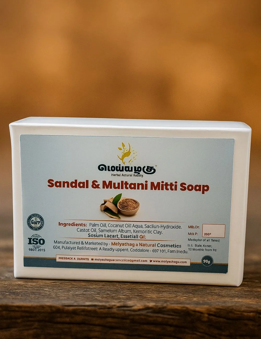A luxurious blend of pure sandalwood and Multani mitti (Fuller’s Earth), this herbal soap deeply cleanses, nourishes, and rejuvenates your skin. Crafted with natural ingredients, it helps maintain a radiant and even-toned complexion while giving a refreshing, earthy aroma.